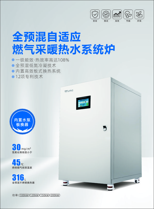 露玛全预混自适应燃气采暖热水系统炉