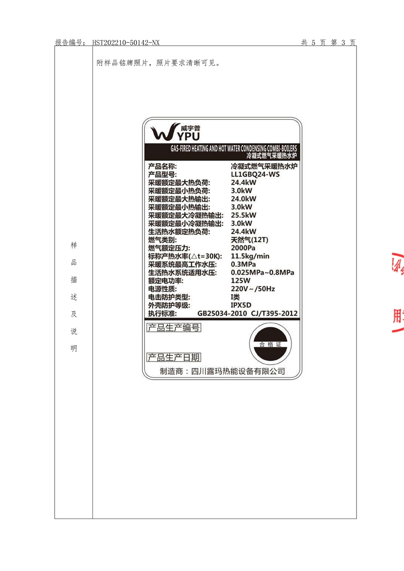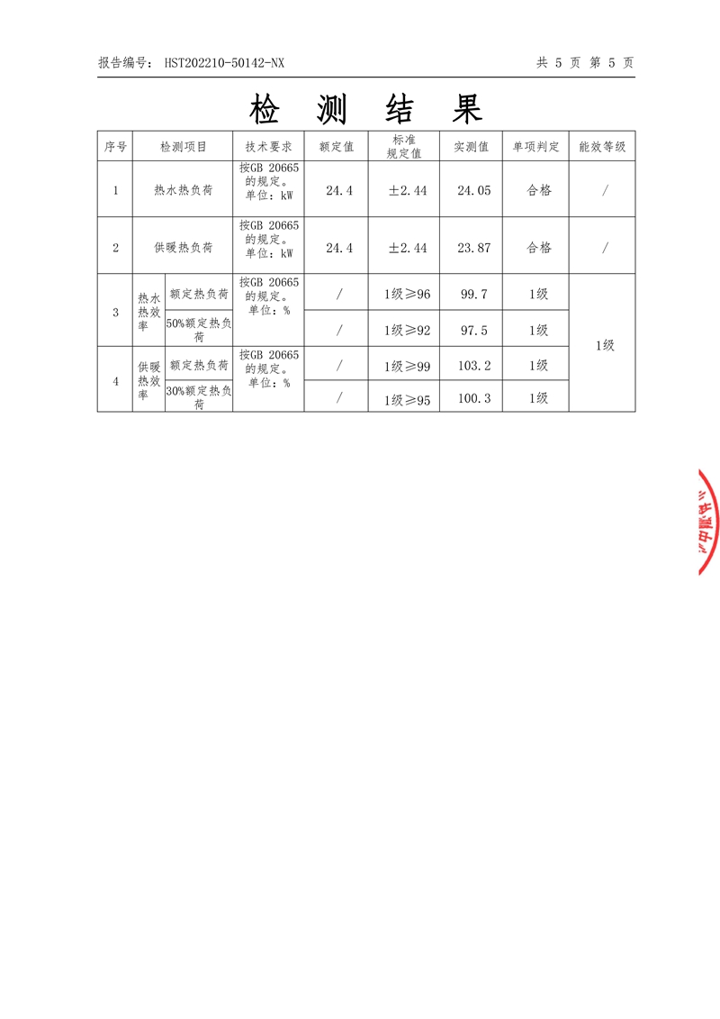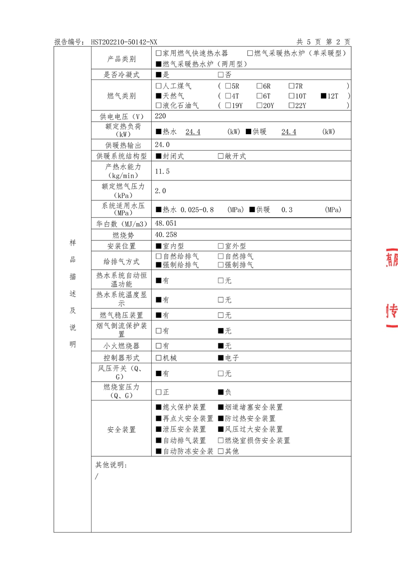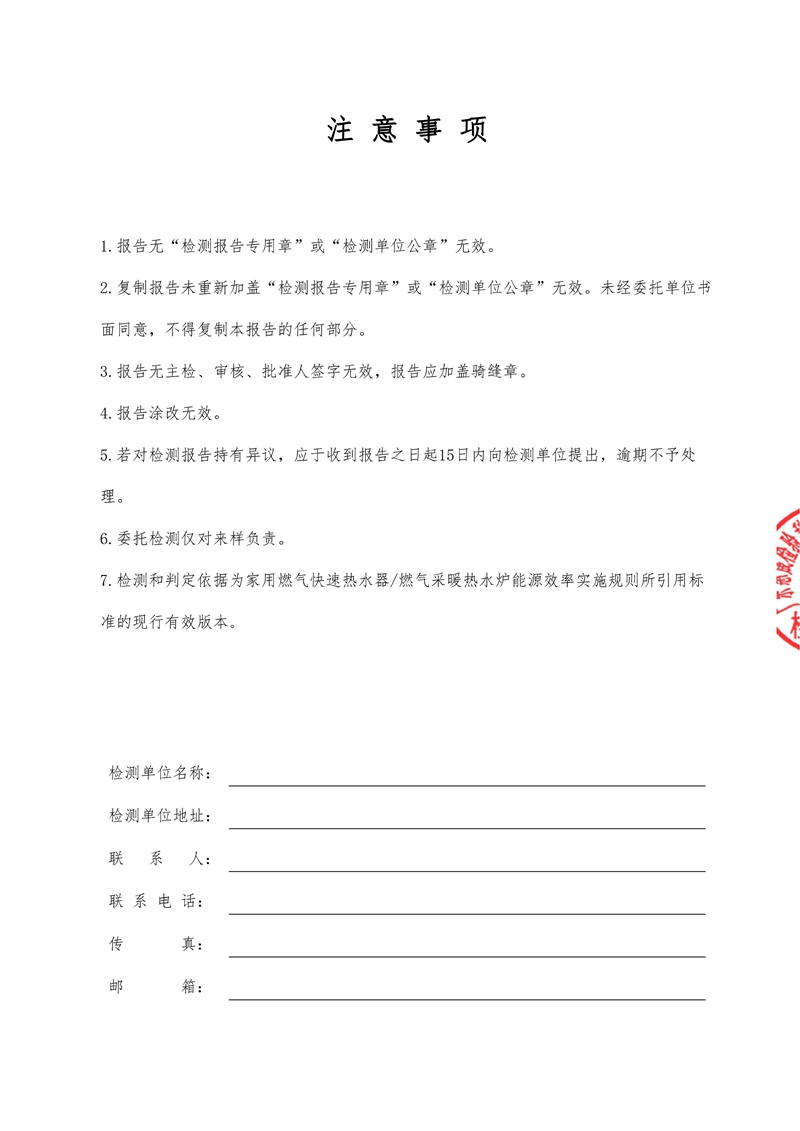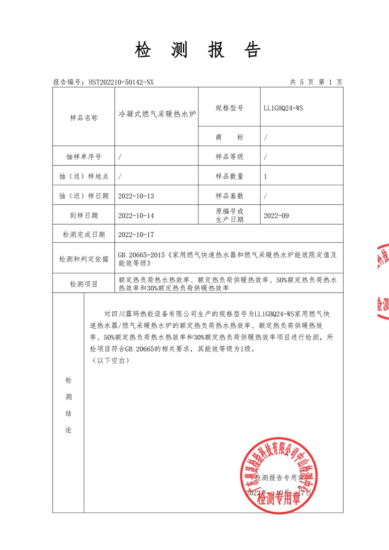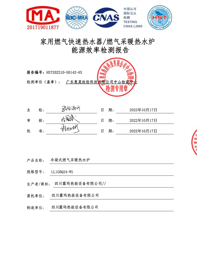 冷凝式燃气采暖热水炉检测报告