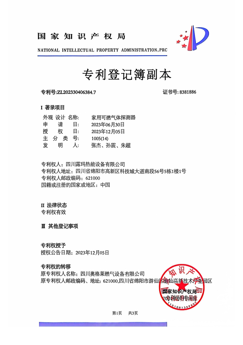 专利-家用可燃气体探测器